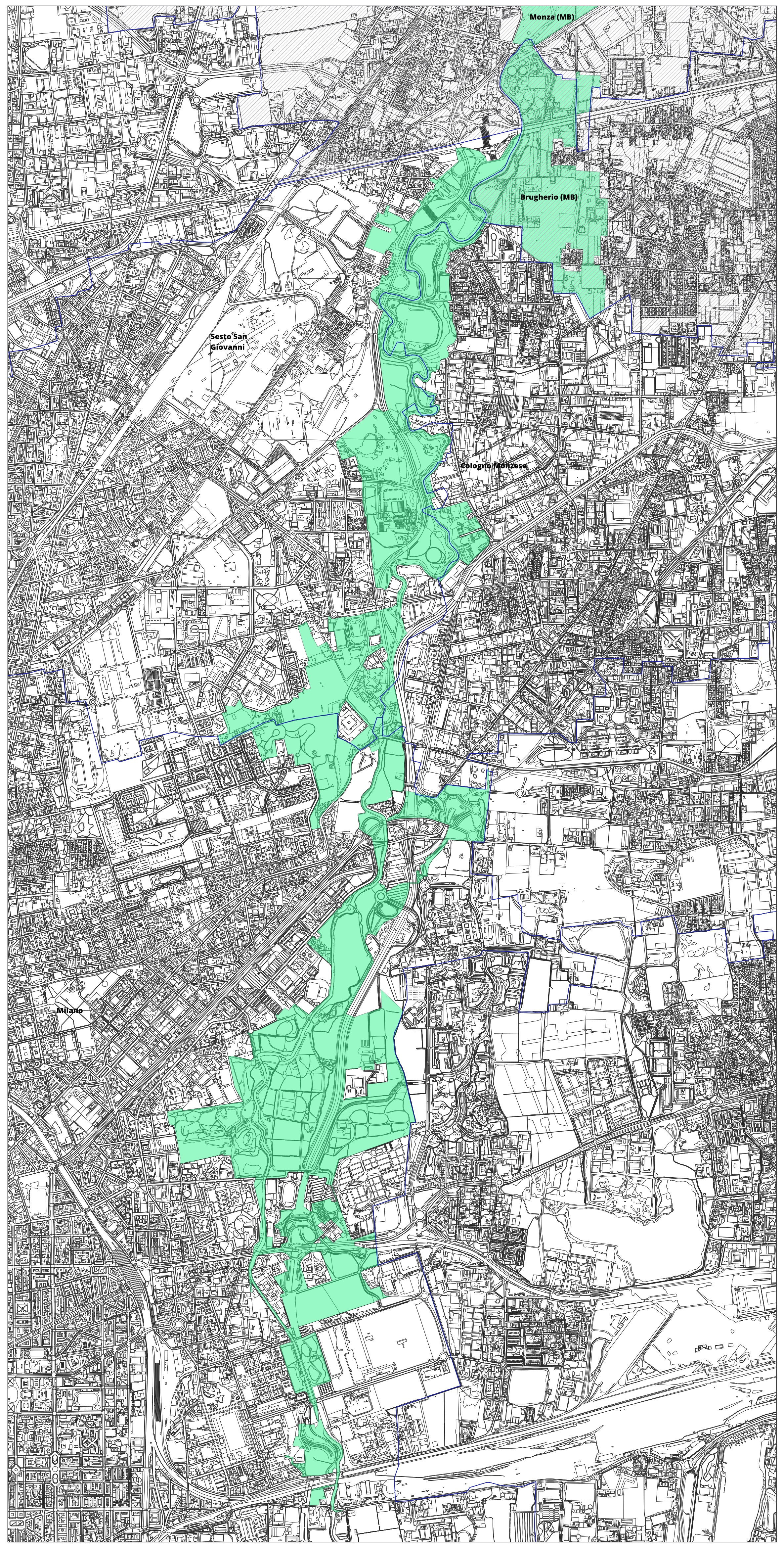 Superficie attuale: 491 ettari (limitatamente alla Città Metropolitana di Milano)