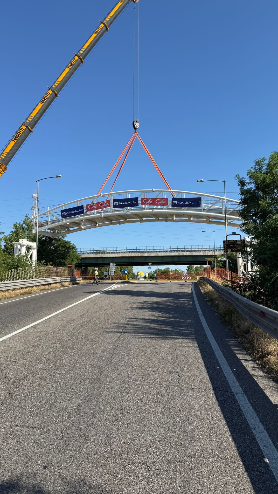 Sabato 28 giugno è stato posato un nuovo ponte ciclabile a scavalco della SP 13 in prossimità della rotonda e delle rampe di accesso e d’uscita della “Via Nuova Cassanese” SP 103.