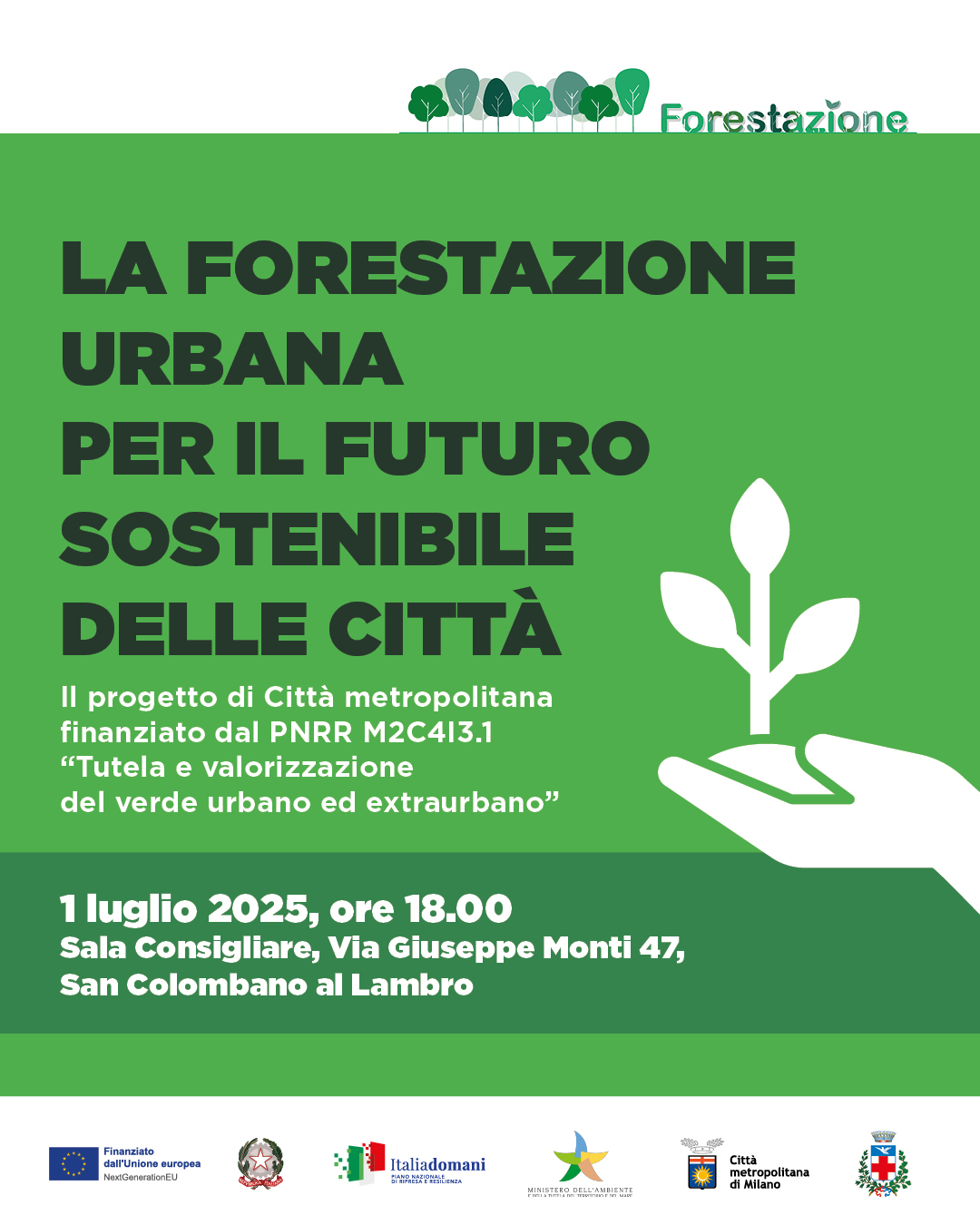 La Città metropolitana di Milano organizza a San Colombano al Lambro un evento di presentazione per illustrare il progetto di tutela e valorizzazione del verde urbano ed extraurbano, finanziato dal PNRR.