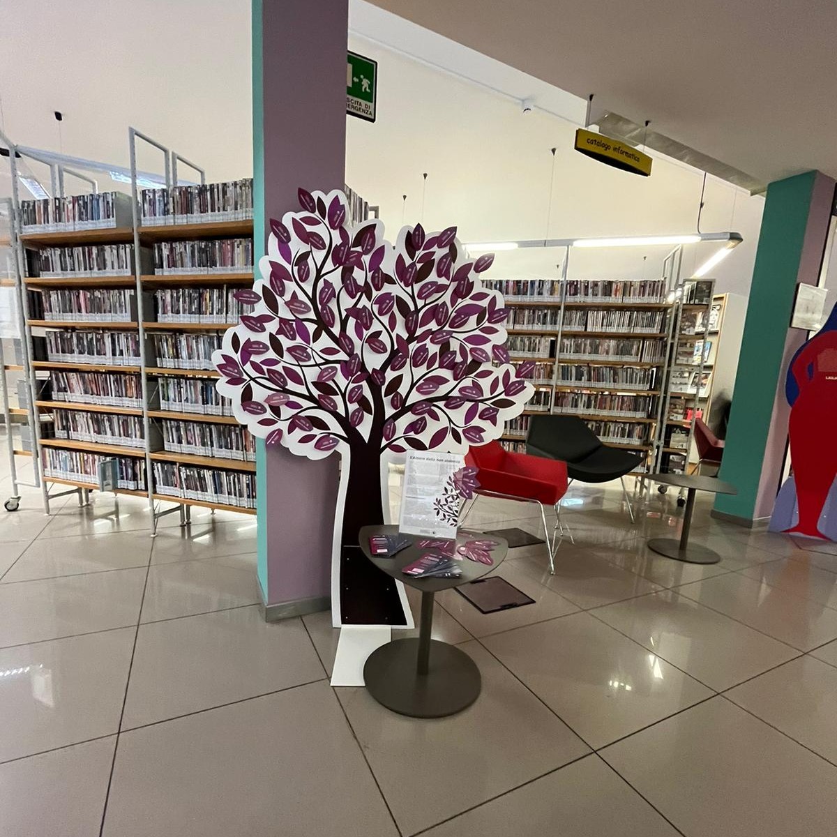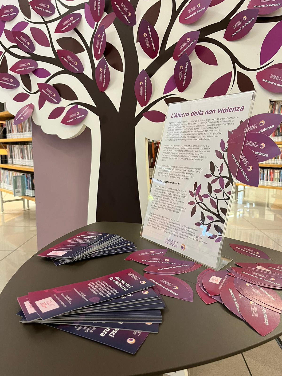 L'albero della non violenza si trova e resterà in Biblioteca, luogo di passaggio e cultura.