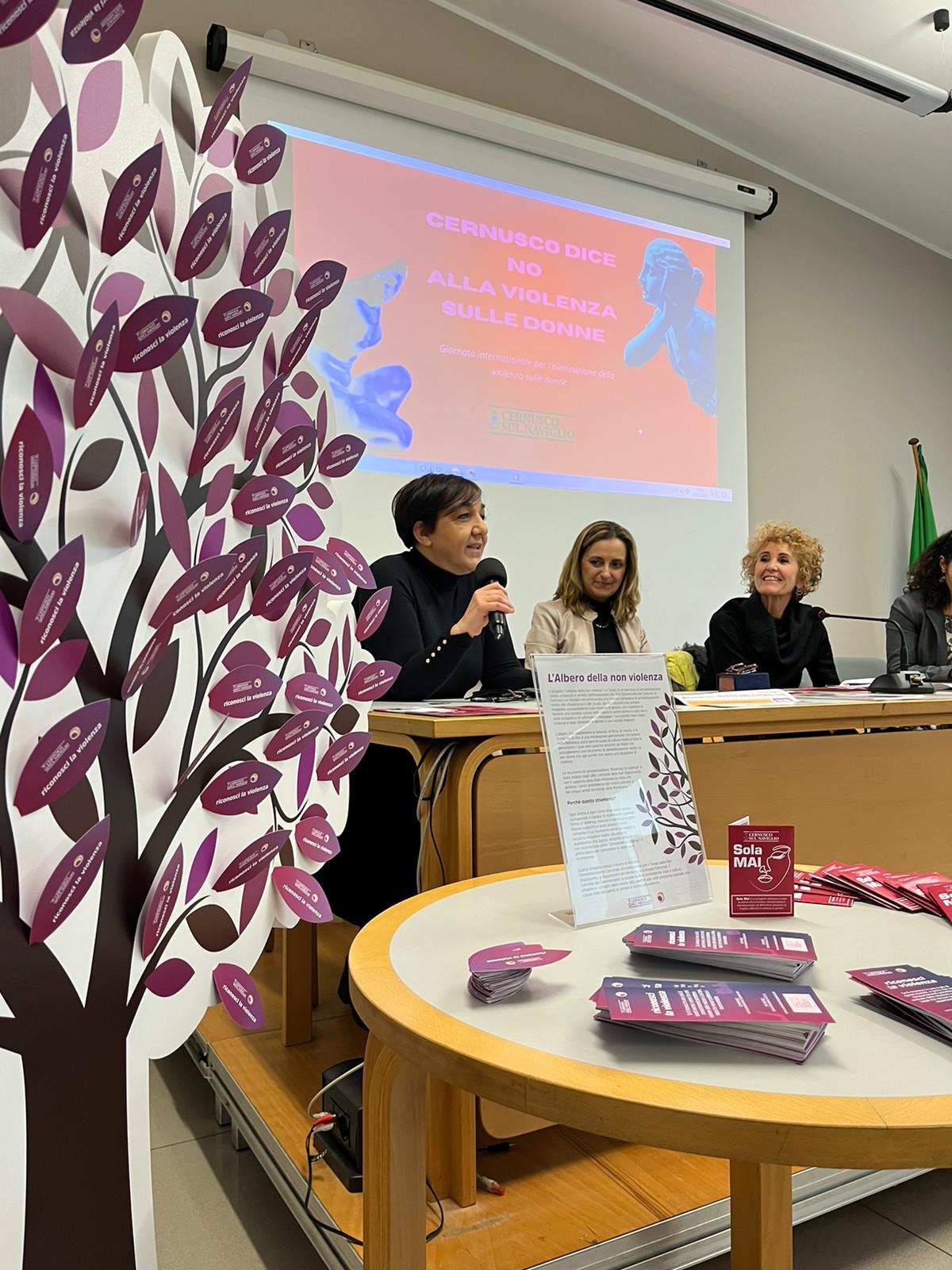 L'albero della non violenza. Sabato mattina, 2 marzo, nella Sala Camerani della Biblioteca di Cernusco sul Naviglio è stato inaugurato un simbolico albero contro la violenza di genere. Le foglie sono strumento per riconoscere la violenza, indicando una serie di comportamenti che possono essere rivelatori o condurre a episodi aggressivi.