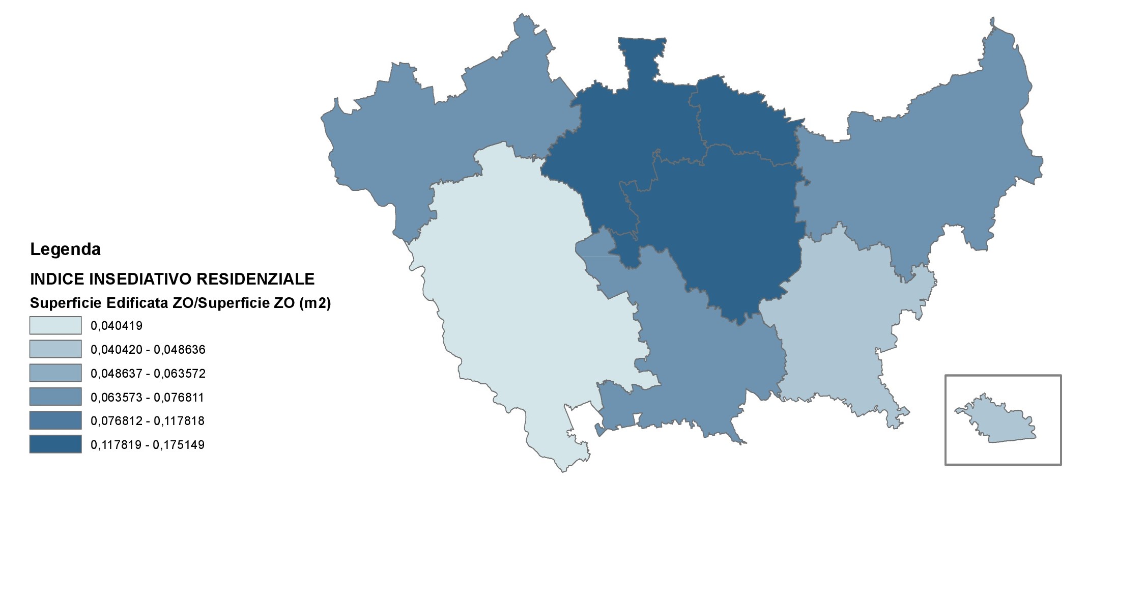 L'indice insediativo edificato rapporta la frazione urbanizzata del territorio rispetto agli spazi non urbanizzati.