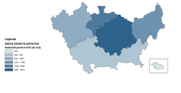 Ad esempio per il territorio di un Ambito Territoriale Ottimale (ATO) viene calcolato come: Abitanti (ab)/Superficie Territorio Ambito Territoriale Ottimale (m2)