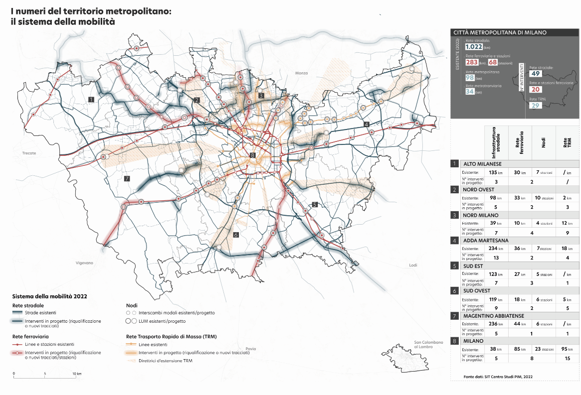Le reti infrastrutturali che interessano il territorio metropolitano, e che ne hanno influenzato lo sviluppo territoriale, si estendono radialmente rispetto all’area centrale milanese, interconnettendosi tra loro attraverso il sistema delle tangenziali che circonda il capoluogo e la cintura ferroviaria cittadina.