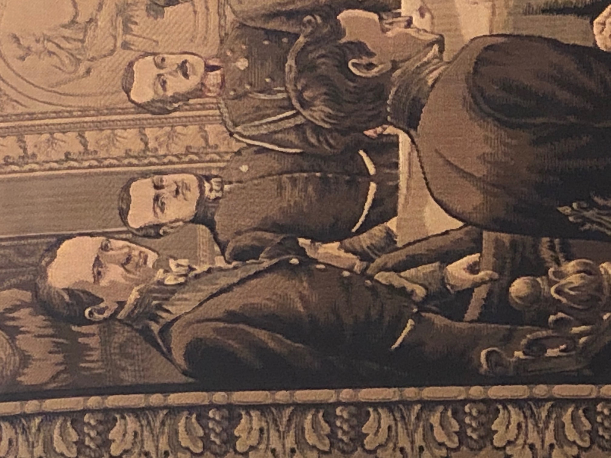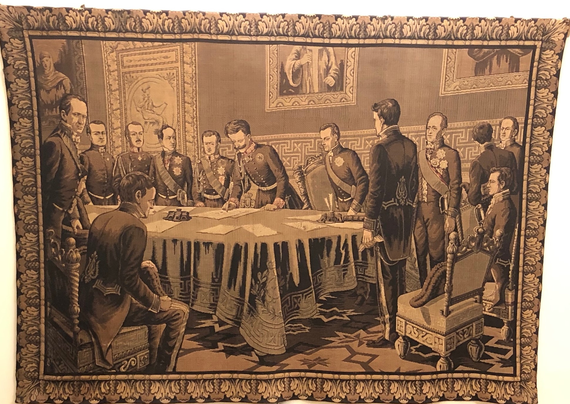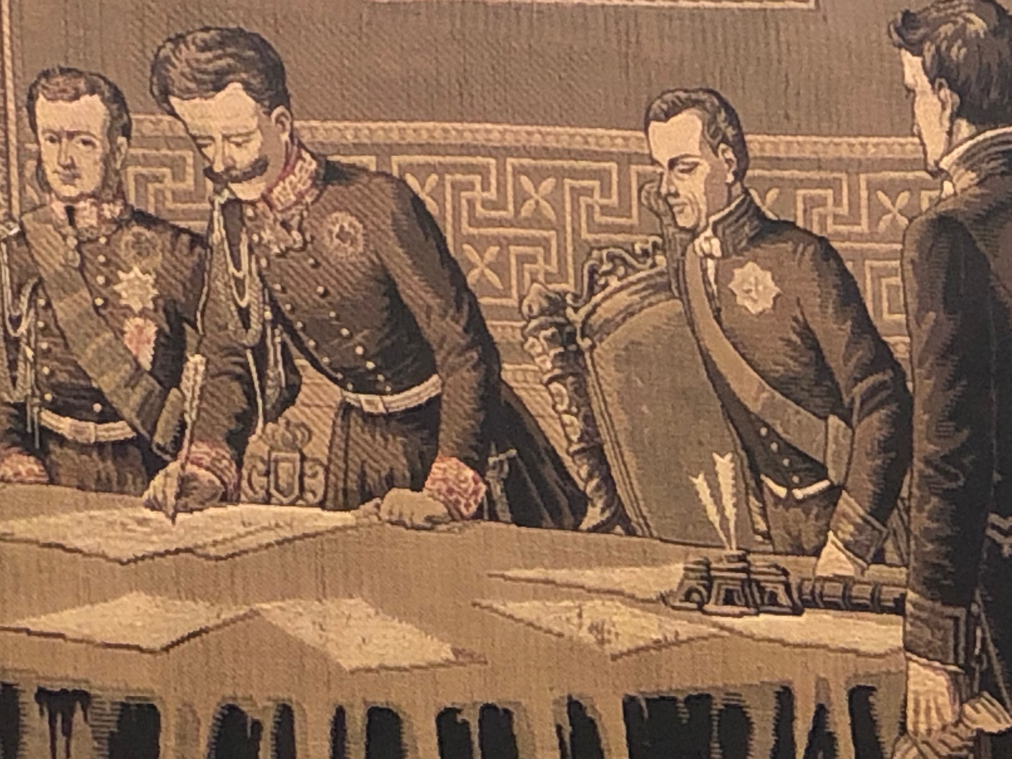Carlo Alberto firma lo Statuto (4 marzo 1848), arazzo, fine sec XIX, una copia in serie, le misure dell'arazzo sono altezza m. 2 larghezza m. 2,93, (v.di sezione Gli altri Arazzi).