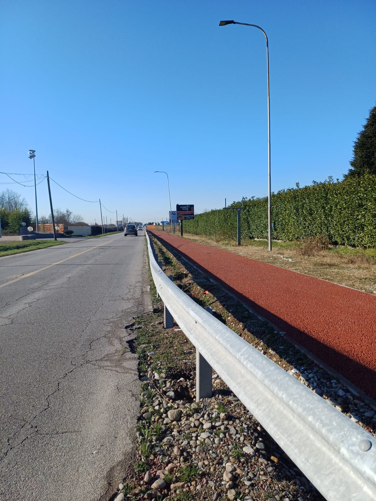 Proseguono i lavori lungo la SP 525. Il tratto tra Vaprio d'Adda e Pozzo d'Adda, nella frazione Bettola, è quasi completato e attualmente sono in corso le operazioni di posa delle barriere di sicurezza, con il completamento previsto a breve in alcune aree. Una volta ultimate le barriere, mancherà solo l'installazione della segnaletica. Questi lavori sono cruciali per la futura connessione della pista ciclabile con Bellinzago Lombardo, lungo la stessa SP 525.