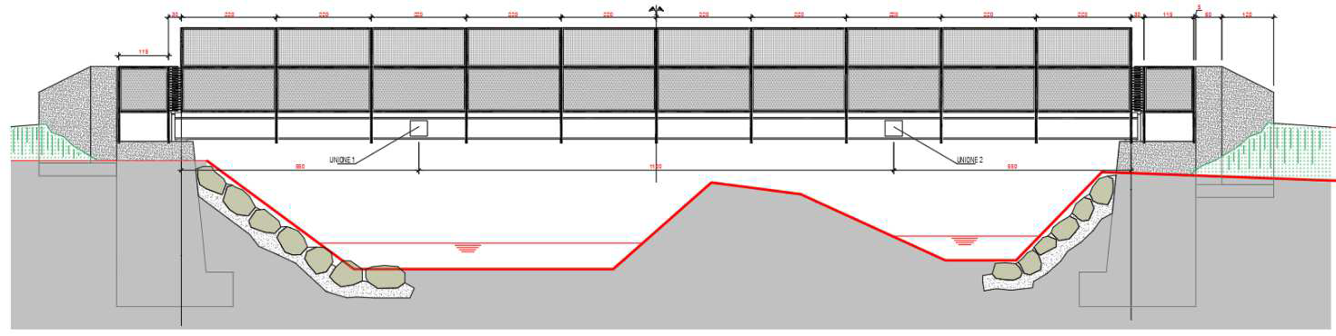 Il ponte in oggetto si estende per circa 22 m e ha una larghezza complessiva di circa 4,30 m e rende possibile il supermaneto della roggia Molina e del torrente Trobbia presso la località di Pozzuolo Martesana.