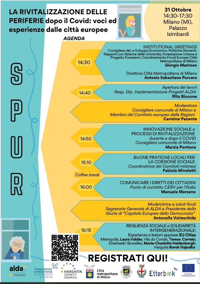 Il 31 ottobre dalle ore 14.30 presso la Sala Consiglio di Palazzo Isimbardi, sede della Città Metropolitana di Milano, in Via Vivaio 1, l'evento pubblico a carattere internazionale relativo al progetto europeo "S.P.U.R." Social Post Covid Urban Revitalization".