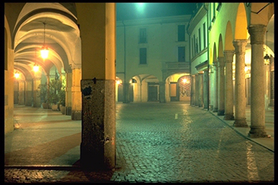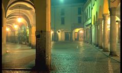 L'antica piazza del Mercato è caratterizzata dall'irregolare allinearsi dei portici, costruiti in epoche diverse a partire dal Trecento. Da notare il seicentesco Palazzo pretorio e comunale, ancora oggi sede dell'istituzione, rimaneggiato nel '700 da Francesco Croce. Di buona fattura sono il portale di accesso allo scalone d'onore e il balcone del piano superiore, intagliato in pietra con sopraornato barocco. Sulla torre, la campana comunale risale al 1716.
