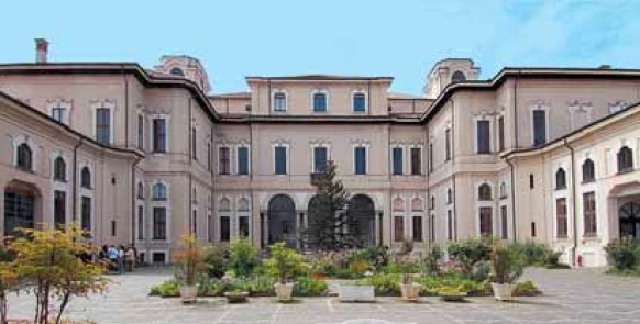 Di fianco alla Collegiata, un muro di cinta e cancelli ciechi tendono a nascondere il parco e gli edifici della villa, con un corpo centrale disegnato nel 1653 da Francesco Maria Ricchino. All'interno si conservano notevoli affreschi di Giovanni Stefano Danedi detto il Montalto, di Carlo Francesco Nuvolone e di Federico Zuccari. Lo scalone si innesta su un'ala più antica, in origine parte del castello.