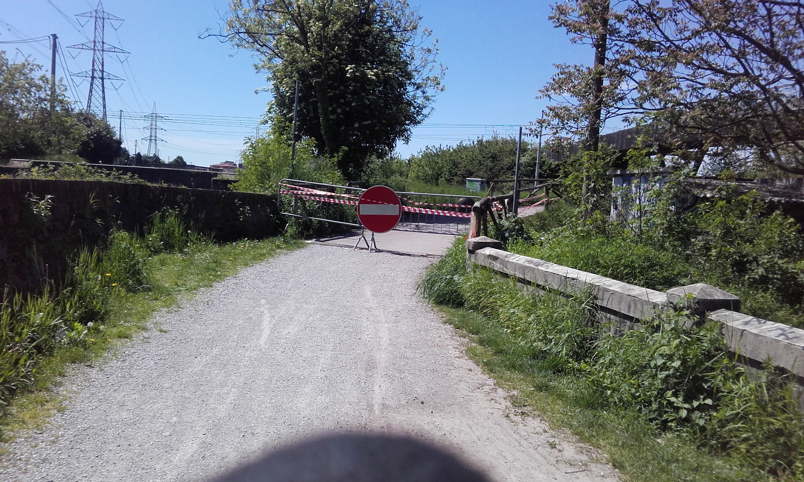 La passerella ciclopedonale di scavalco della linea ferroviaria Milano-Canzo- Asso a Paderno Dugnano presenta un cedimento del parapetto in legno, che comporta condizioni di grave pericolo di caduta dall’impalcato per gli utenti del percorso. Per ovvi motivi di sicurezza la passerella è stata chiusa sino al rispristino del parapetto.