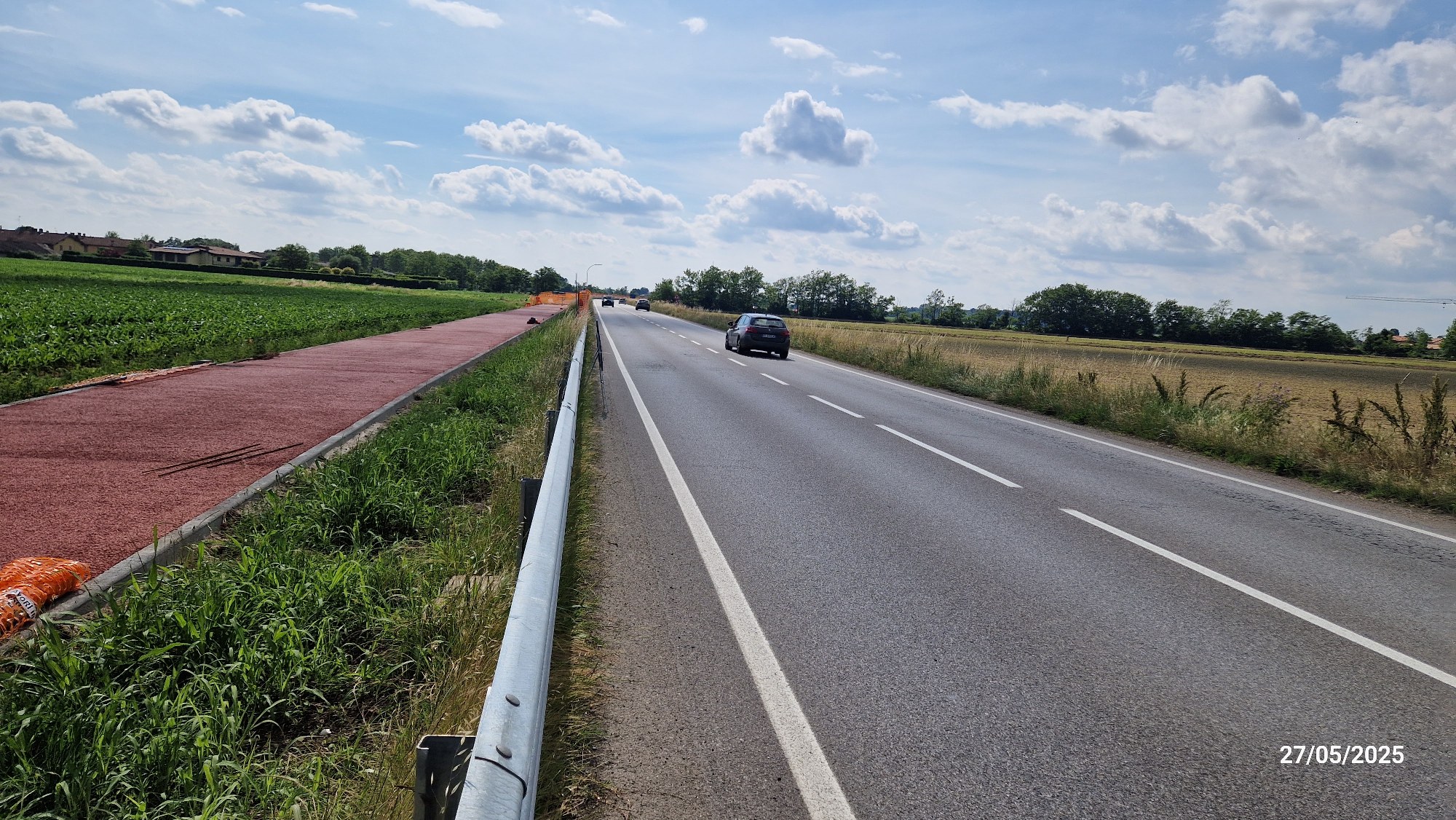 Proseguono i lavori sulla linea 12 di Cambio. Il 22 maggio sono iniziati i lavori di pavimentazione con calcestruzzo drenante della pista ciclabile Biciplan Cambio Linea 12 in fase di costruzione dalla rotatoria SP114 - viale Europa in Comune di Cusago in direzione Abbiategrasso.