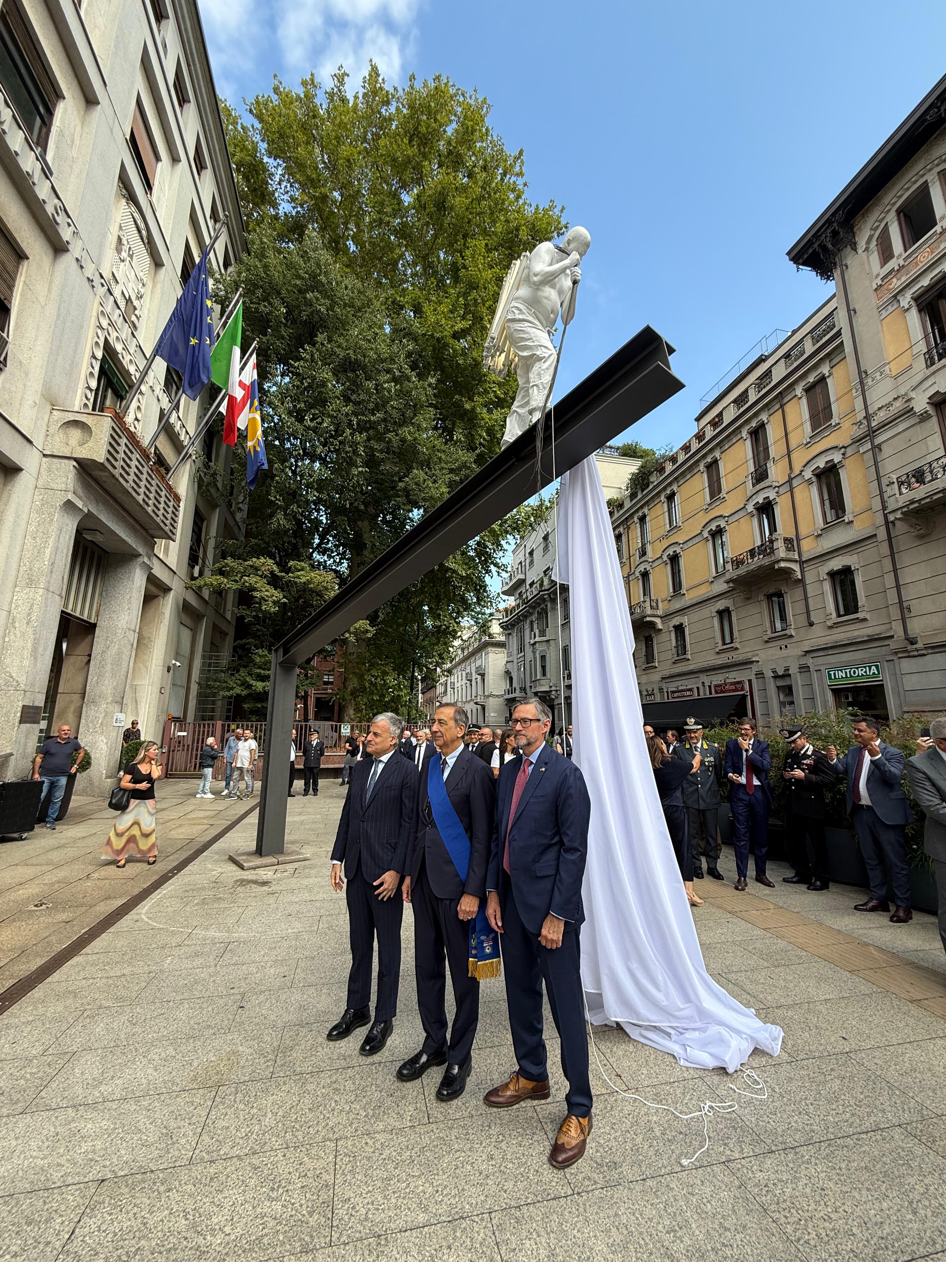 Il 9 maggio 2009, in occasione della Giornata della memoria di tutte le vittime del terrorismo e delle stragi, istituita nell’anniversario dell’uccisione di Aldo Moro, "L’uomo della Luce" è stato collocato nella piazza di fronte a Palazzo Isimbardi, intitolata alle vittime degli attentati dell'11 settembre 2001.