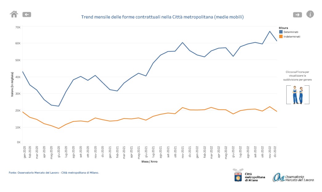 I datori di lavoro attivi, ovvero che lo scorso anno hanno assunto personale, sono stati solo l’8% in più di quelli dell’anno precedente: nel 2021 erano 87.738, nel 2022 94.480. Questo suona da campanello di allarme, tanto più per l’economia milanese che ha un sedime produttivo costituito per il 92% da piccole medie imprese (con meno di 10 dipendenti). La crescita dei datori di lavoro attivi a significa una crescita quanto meno auspicata del lavoro. Il piccolo imprenditore inoltre è più incline (rispetto alla grande azienda) a siglare contratti a tempo pieno e indeterminato o di apprendistato. Il che significa meno precarietà diffusa e più stabilità.