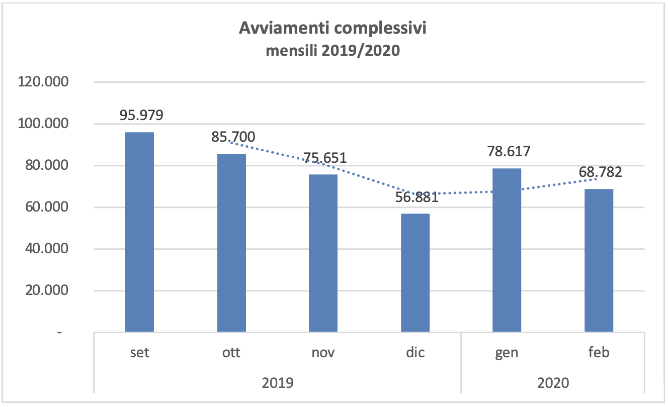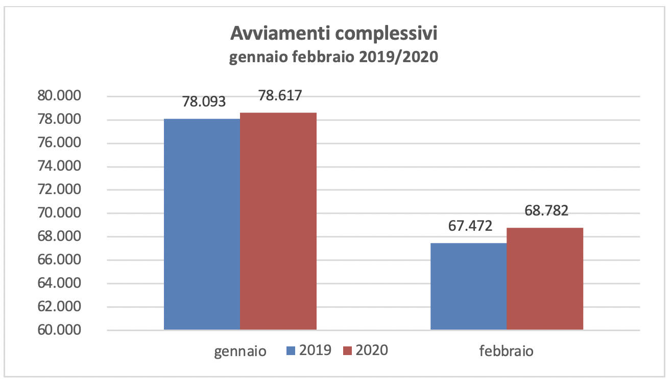 La contabilità degli avviamenti registrati nei primi due mesi del 2020 ha superato comunque quelli dello stesso periodo dell’anno precedente, rispettivamente +07% e +1,9%; valori che rispecchiavano l’elevato livello di fiducia nei confronti nelle prospettive di rilancio economico del motore produttivo locale dopo i mesi di contrazione registrati nel finale del 2019.