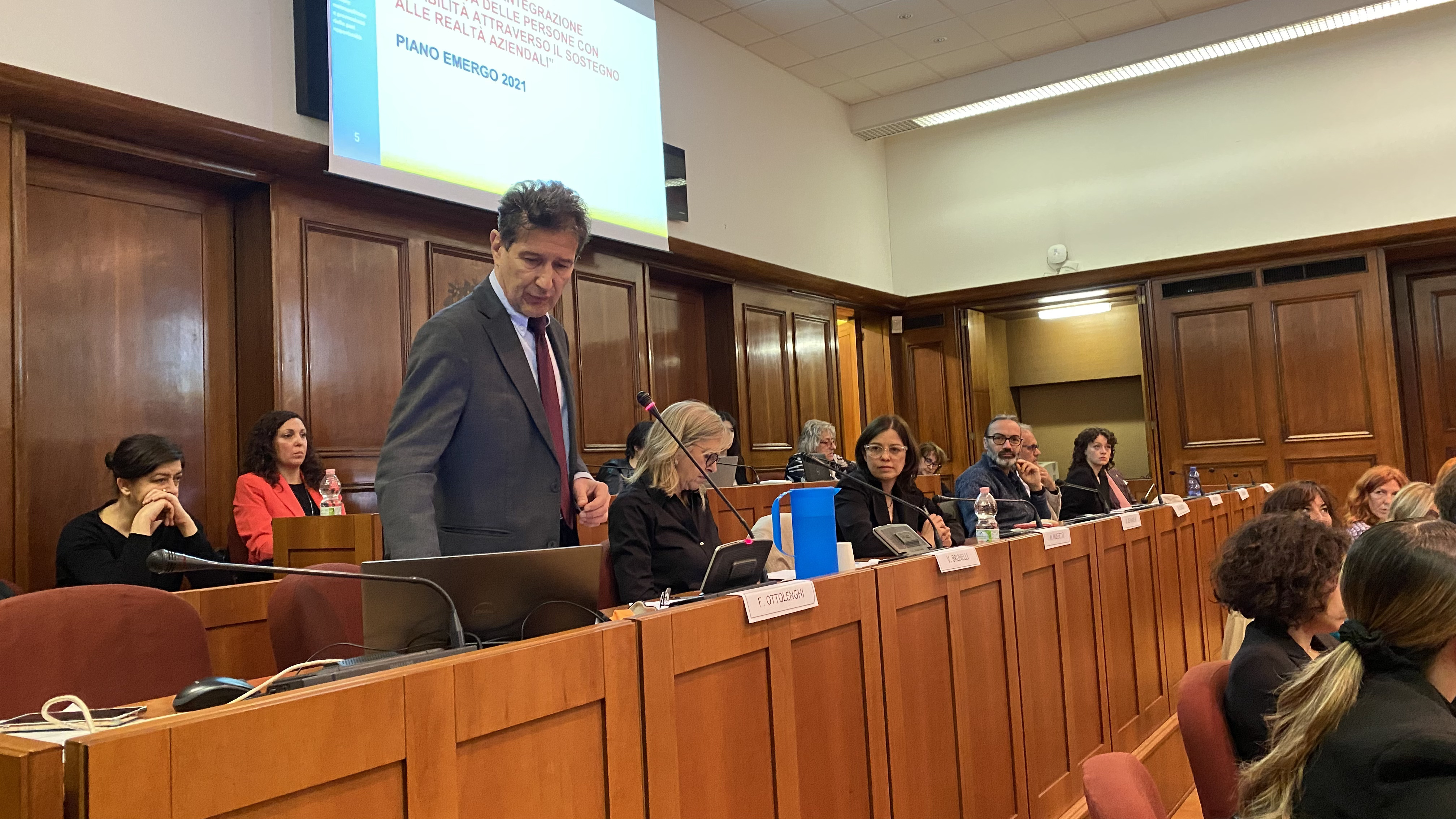 Alessandra Borroni (Kone S.p.A.) e Stefano Risolè (Château Monfort), moderati da Daniele Viola, responsabile Politiche Attive del Lavoro (Consorzio Sir), si sono concentrati su "Il ruolo del tutor aziendale". "Un ruolo fondamentale, perché le persone formate sono più consapevoli, aperte, flessibili" ha detto la prima, responsabile dell'ufficio del personale impegnata a formarsi quale disability manager. Convenendo comunque con Risolè che "il training è di supporto, ma poi, da affrontare, c'è la concreta giornata lavorativa concertando tutte quante le persone inserite in azienda". Una fatica non da poco, appesantita dalla burocrazia, che certo non si affronta solo per "avere il certificato di 'azienda che fa inclusione', magari inteso come medaglia di cui gloriarsi pubblicamente. Il tema dell'inserimento di persone con disabilità nell'organico di una azienda, come ha francamente sottolineato Risolè, direttore di albergo, si può affrontare come obbligo o come opportunità. "Vero è che all'inizio si guarda soprattutto al primo. Noi abbiamo aderito genuinamente, consapevoli che si sarebbero presentati problemi imprevisti, che si sarebbe dovuto capire perché, a volte, non funziona...".