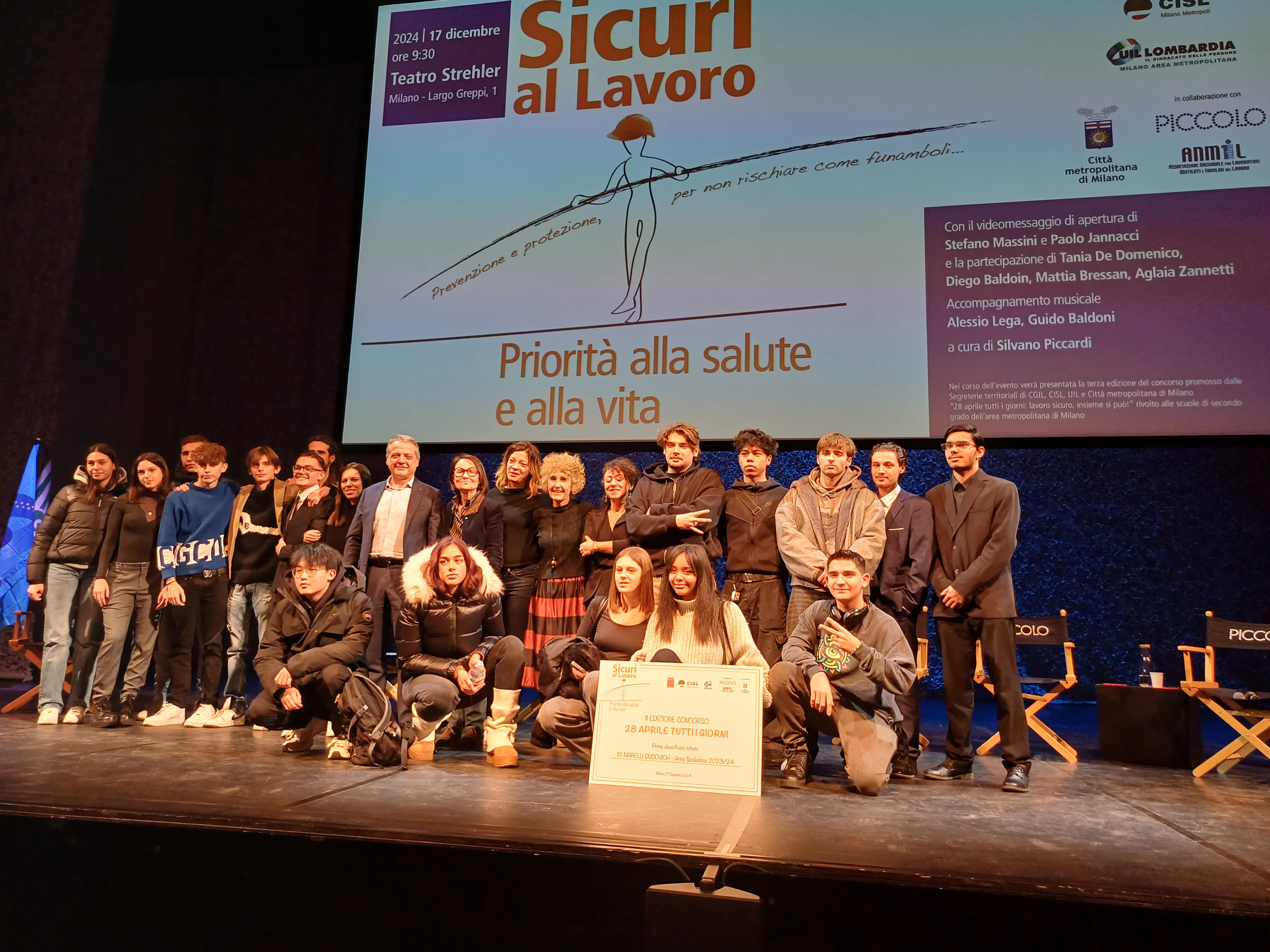 Martedì 17 dicembre, al Teatro Strehler, la Città metropolitana di Milano ha patrocinato la premiazione della terza edizione del concorso "28 Aprile Tutti i Giorni", un progetto didattico ed educativo rivolto alle ragazze e ai ragazzi delle scuole secondarie di secondo grado, ideato, organizzato e promosso dai sindacati CGIL, CISL e UIL.