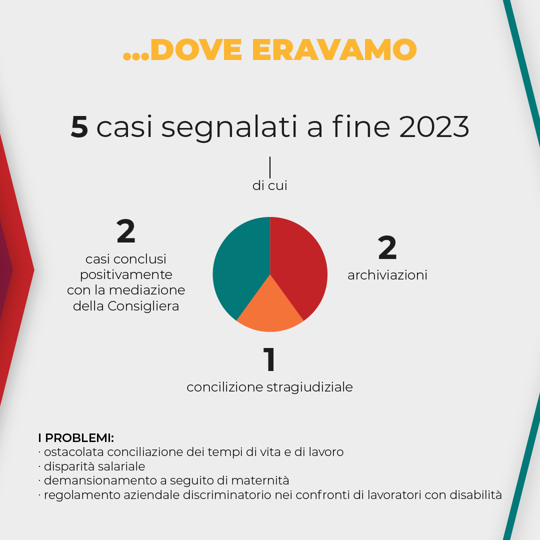 Un anno intenso di lavoro per la Consigliera di Parità della Città metropolitana di Milano, Barbara Peres. Il 2024 era iniziato con la gestione di cinque casi presi in carico già nel 2023: due si sono conclusi positivamente con la sola mediazione della consigliera, una ha richiesto una conciliazione stragiudiziale, mentre due sono state infine archiviate. Varia la problematica affrontata, dalla ostacolata conciliazione dei tempi di vita e lavoro alla disparità salariale, dal demansionamento a seguito di maternità (ben due casi con vittime manager) ad un regolamento aziendale discriminatorio nei confronti di lavoratori con disabilità.
