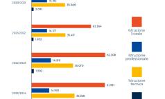 I corsi per adulti, svolti principalmente in orario serale, registrano 2.964 iscritti, segnando un calo del 5,3% rispetto al 2020/2021. Il dato riflette una tendenza nazionale: l’Italia registra un tasso di partecipazione alla formazione per adulti pari al 35,7%, inferiore di 11 punti alla media europea.