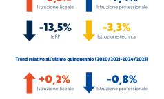 Diminuiscono le iscrizioni al liceo classico (-9,8% in un anno, -14,9% nel quinquennio) e al liceo linguistico, che ha perso oltre 1.700 studenti in cinque anni. Dopo un boom nel biennio 2020-2022, il liceo artistico si mantiene stabile con 5.813 iscritti.