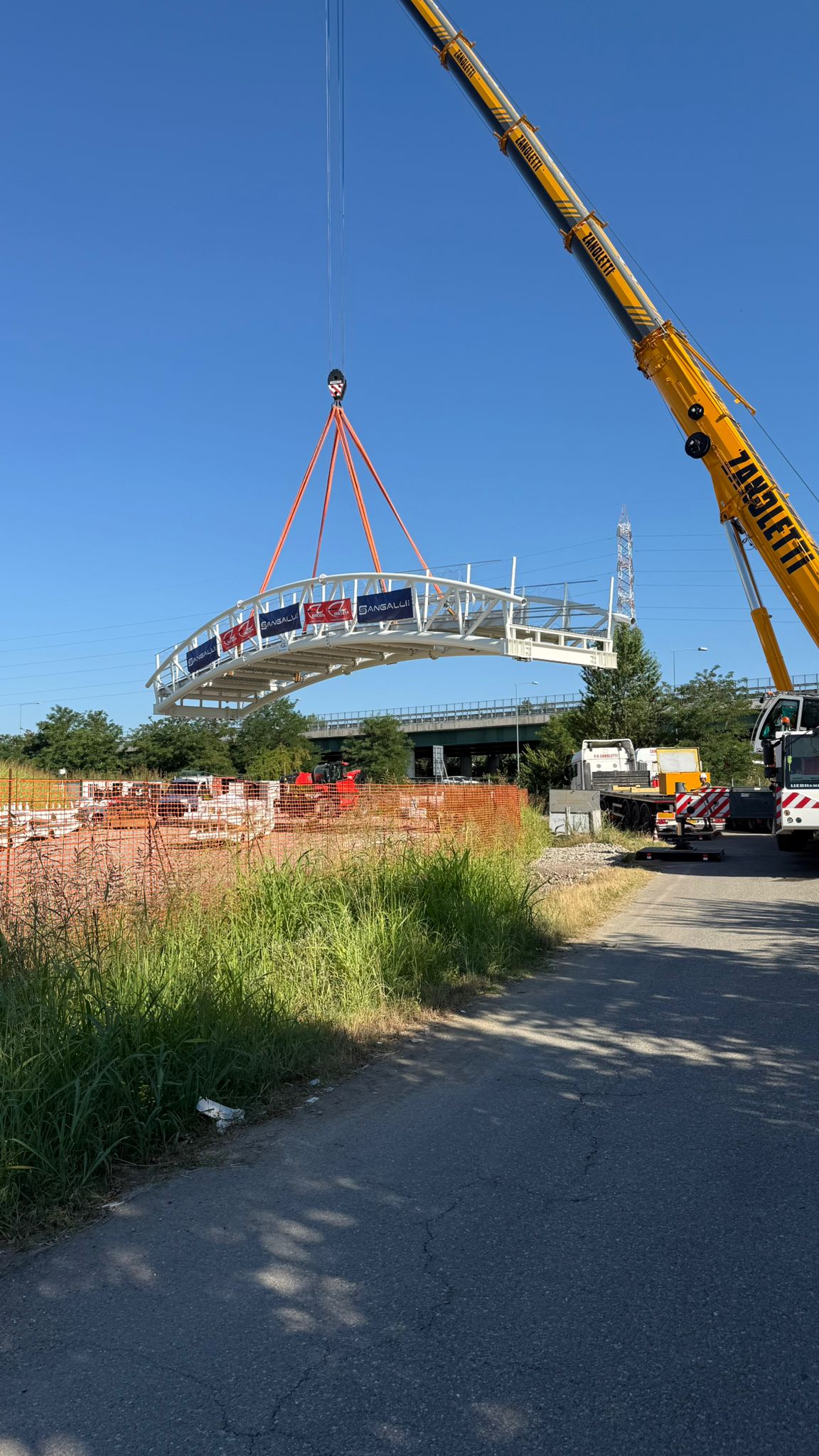 Sabato 28 giugno è stato posato un nuovo ponte ciclabile a scavalco della SP 13 in prossimità della rotonda e delle rampe di accesso e d’uscita della “Via Nuova Cassanese” SP 103.