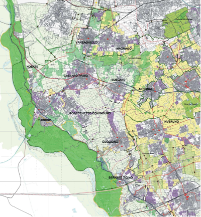 - del sistema ambientale con particolare riferimento al quadro delle “precondizioni” paesistico/ambientali alla trasformazione del territorio, alla costruzione di una trama verde di scala territoriale per garantire la continuità delle aree verdi e agricole; alla definizione di un sistema continuo di fruizione turistico/culturale delle aree ambientali di qualità attraverso i principali corridoi della rete ecologica, il sistema delle acque (Fiume Ticino, Canale Villoresi, Naviglio Grande), le aree protette (Parchi Regionali e PLIS, anche in progetto) quale elemento strutturante il progetto di Dorsale Verde Nord; al patrimonio architettonico quale elemento di identità dei singoli nuclei e contesti urbani e dei percorsi storici del Castanese;