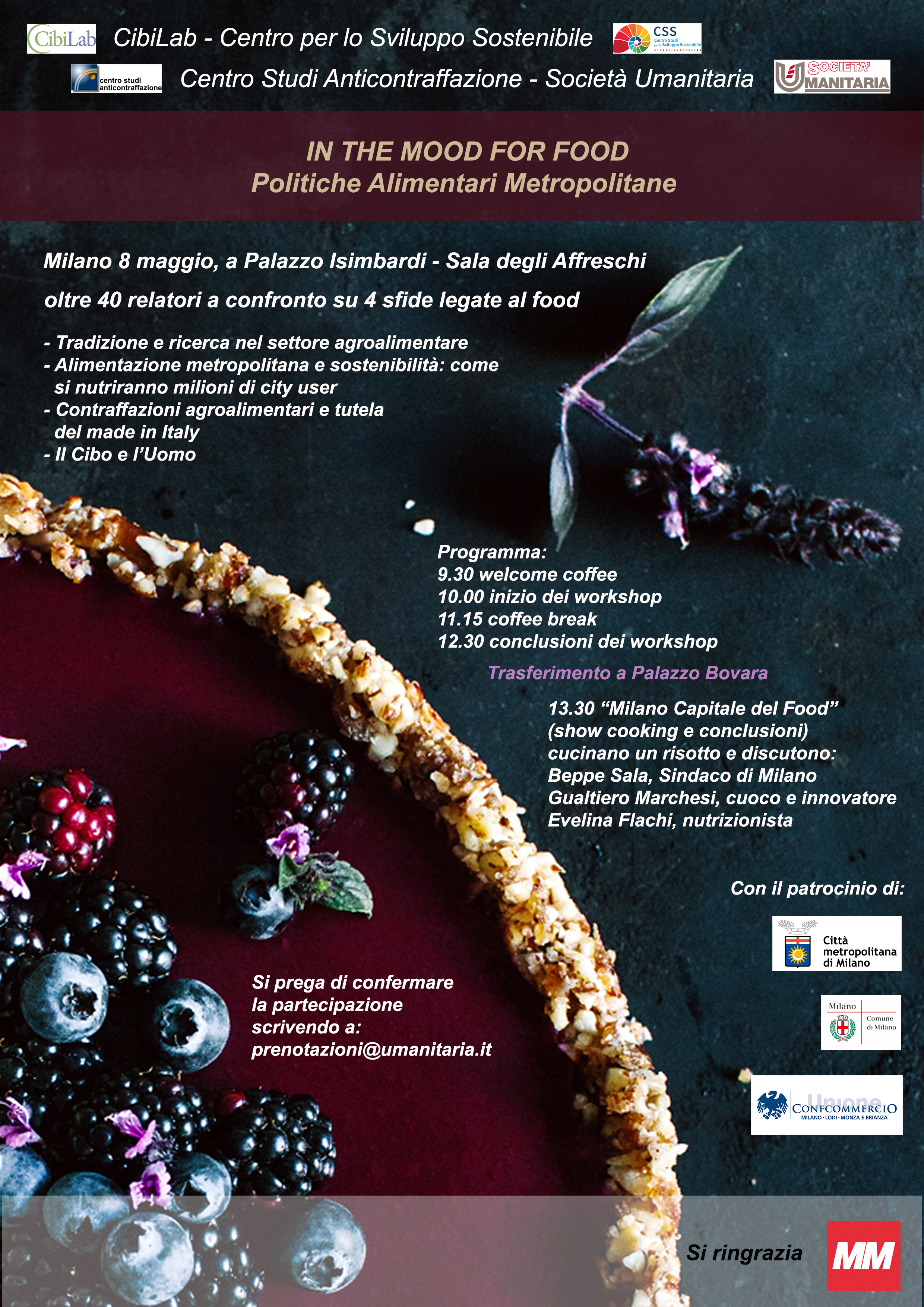 Lunedì 8 maggio, a partire dalle ore 9.30, in occasione di Milano Food City, si terrà a Palazzo Isimbardi, sede delle Città metropolitana di Milano “In the mood for food” ovvero quattro workshop tematici dal titolo: