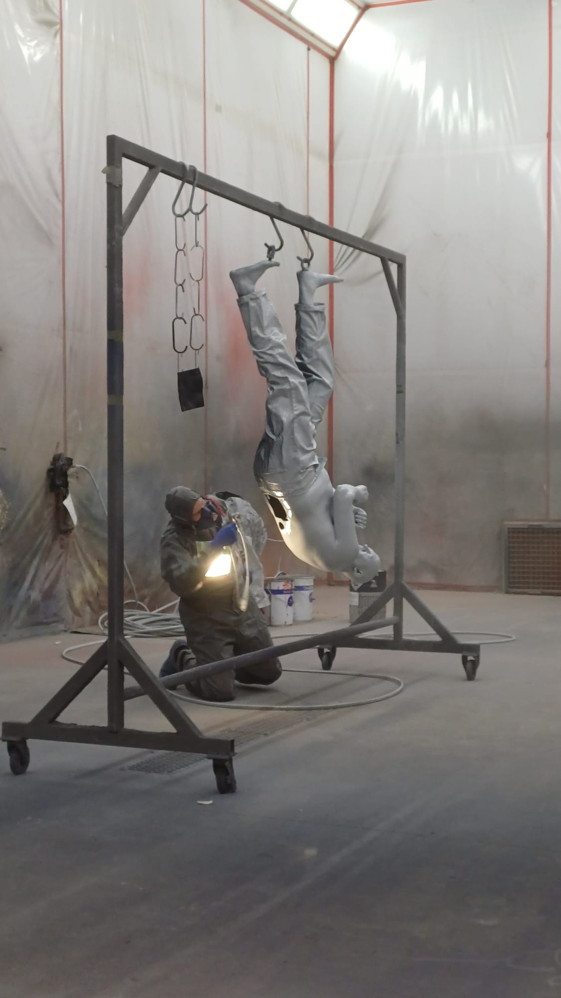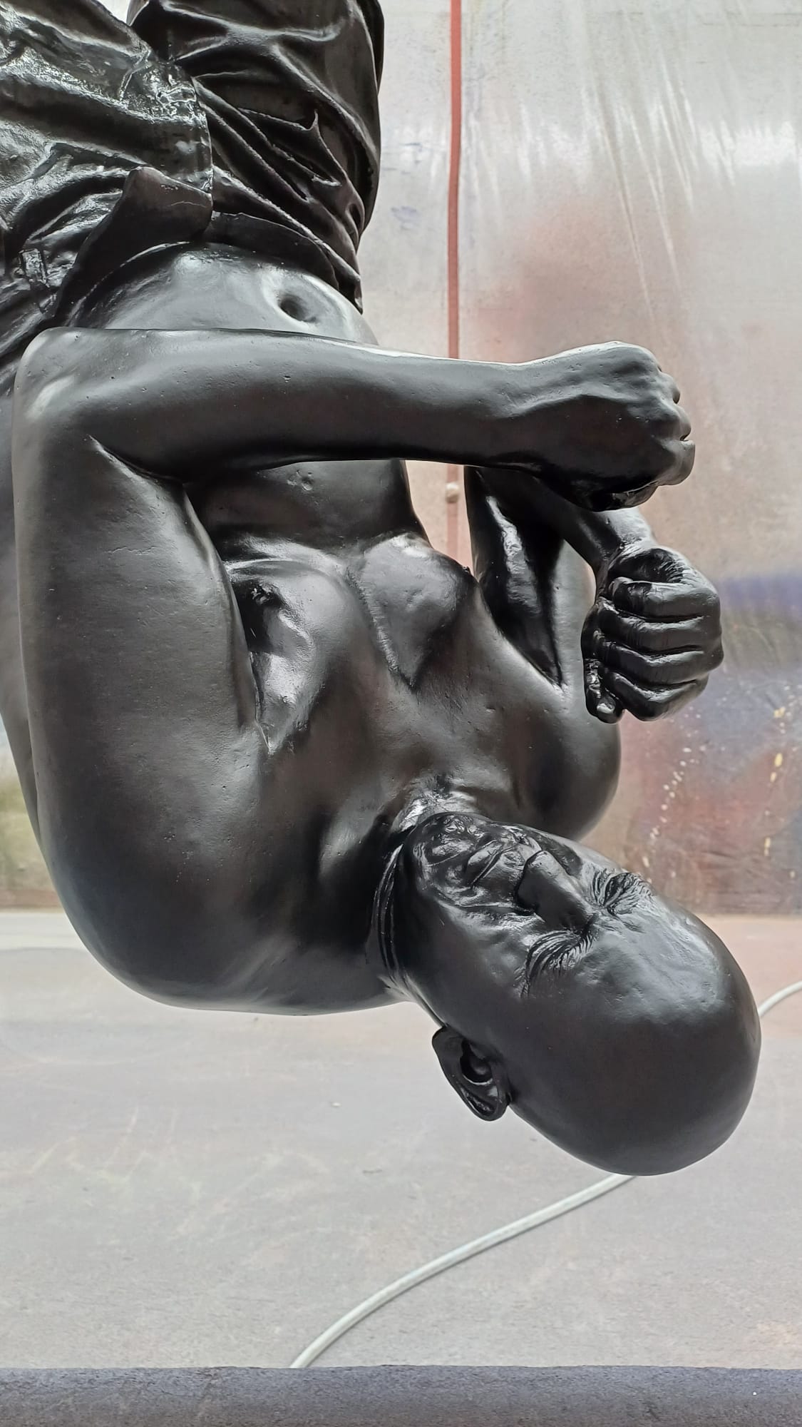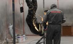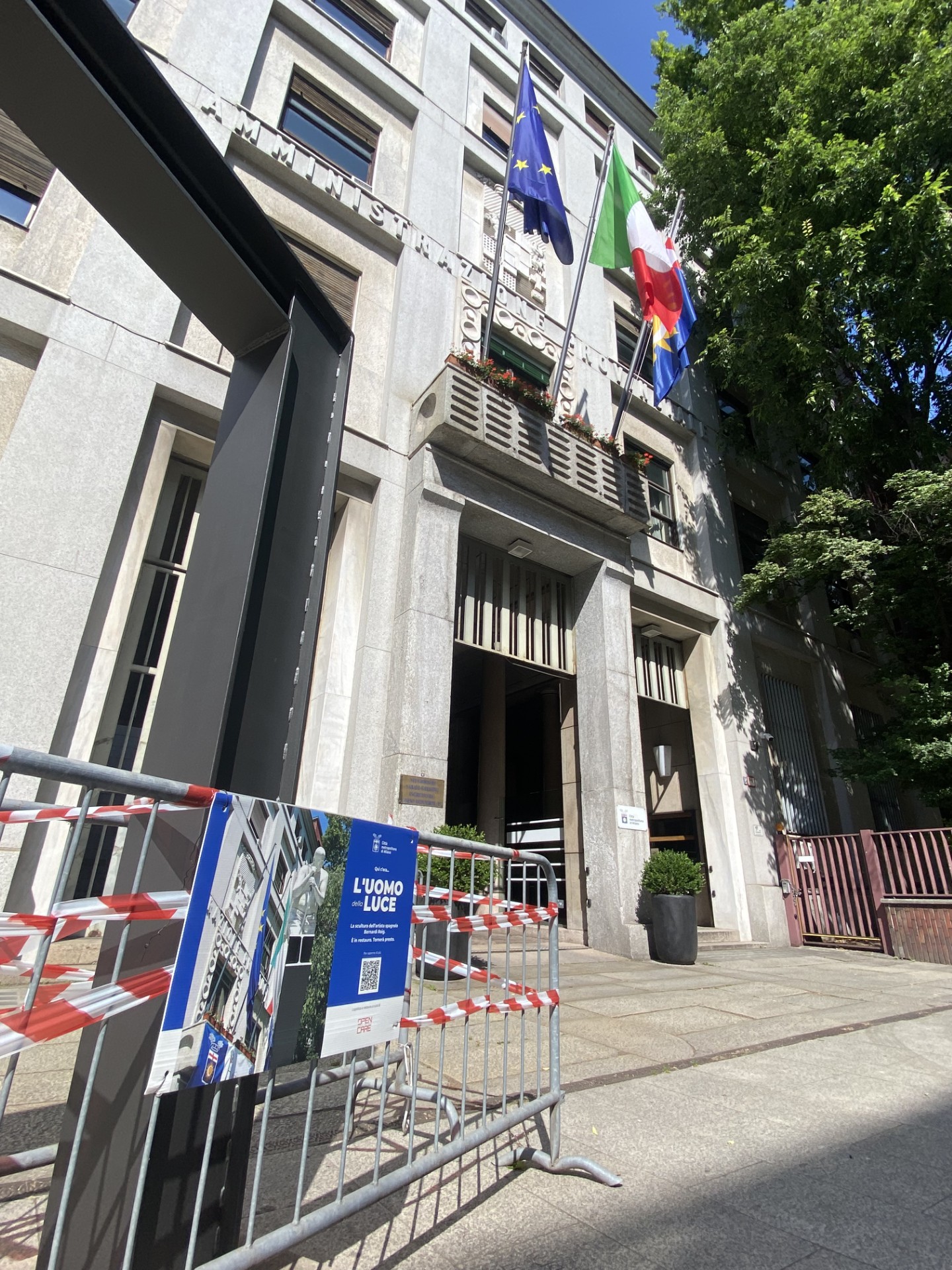 All'alba di lunedì 5 maggio la scultura"L'Umo della luce" è stata sganciata dal suo supporto davanti alla sede della Città metropolitana di Milano per iniziare un percorso di restauro in laboratorio.