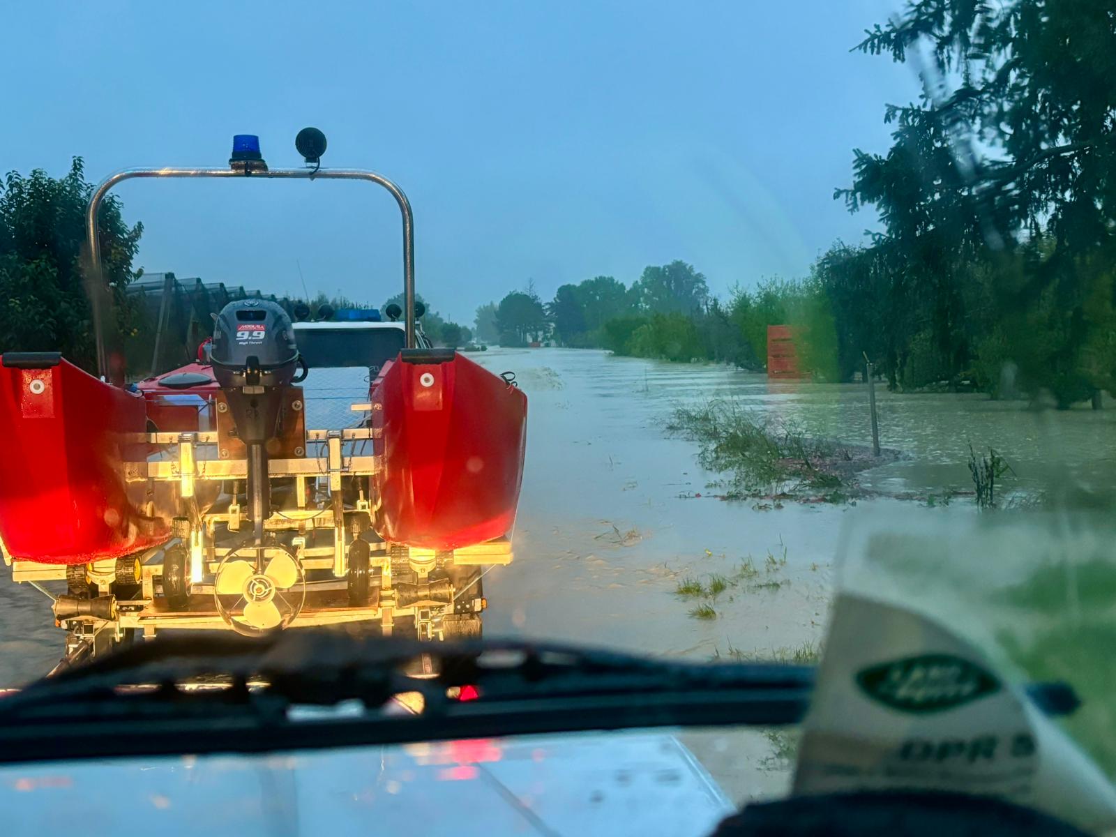 Sul posto sono state inviate squadre specializzate negli interventi relativi al rischio idraulico e nel soccorso acquatico, munite delle attrezzature necessarie per affrontare eventuali esondazioni (pompe idrovore, torre-faro, gommoni…).