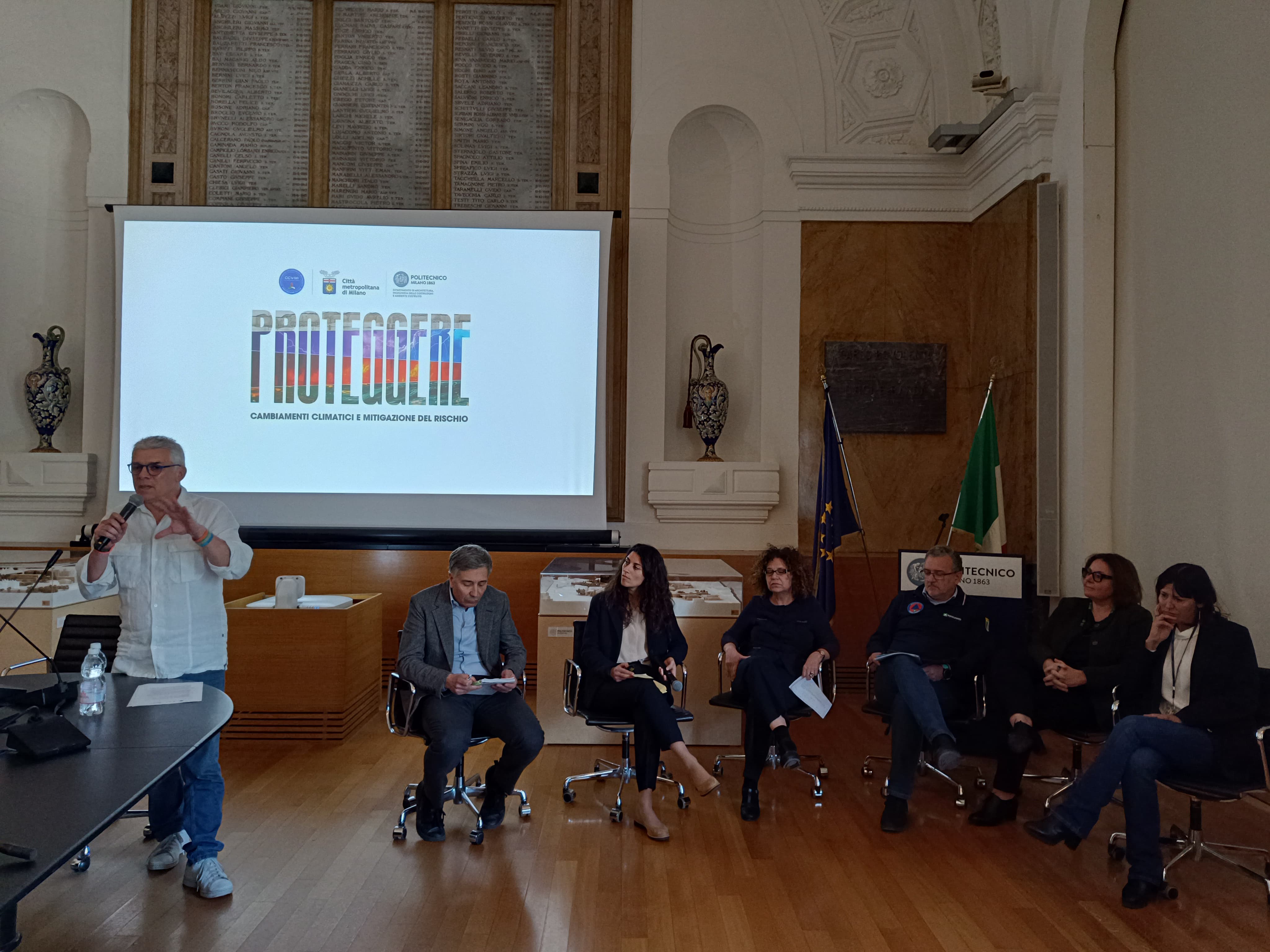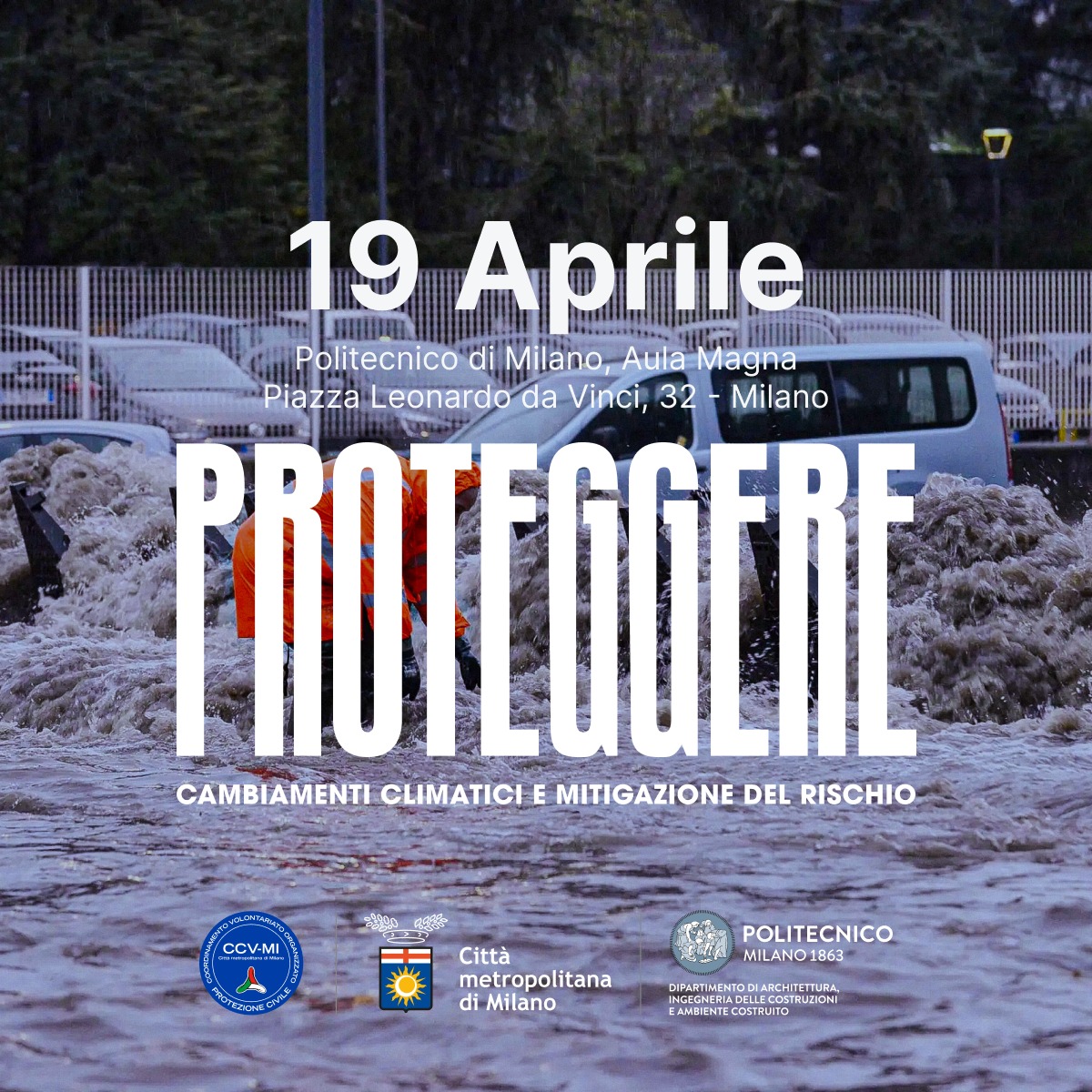 Il modificarsi del clima, con tutte le sue implicazioni, sta rapidamente diventando una delle questioni più urgenti e complesse del nostro tempo. Le sue conseguenze sono già visibili in ogni angolo del nostro pianeta e, senza azioni tempestive, la sicurezza di comunità, ecosistemi ed economie potrebbe essere in pericolo. I cambiamenti climatici, la loro prevenzione e mitigazione e le sinergie attuabili sono stati protagonisti, venerdì 19 aprile 2024, nel convegno “Proteggere. Cambiamenti climatici e mitigazione del rischio”, organizzato dal Comitato di Coordinamento del Volontariato Organizzato di Protezione Civile di Milano (CCV-MI) e dalla Città metropolitana di Milano, in collaborazione con il Politecnico di Milano – Dipartimento di Architettura, Ingegneria delle Costruzioni e Ambiente Costruito (DABC), in scena nell’aula Magna del Politecnico (Piazza Leonardo da Vinci, 32 – Milano).