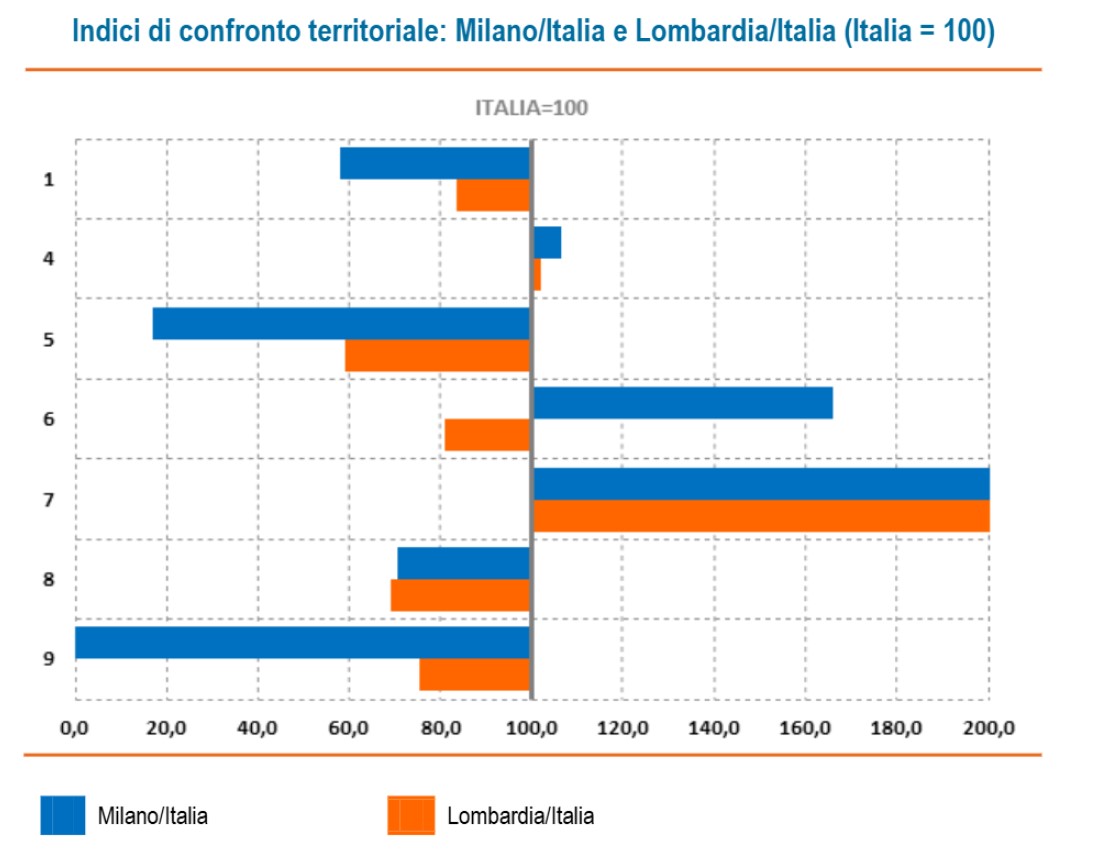 Quello che emerge dai dati in merito alla dimensione della Qualità ambientale nel milanese è assolutamente negativo, per un contesto molto urbanizzato e per l’inquinamento ambientale.