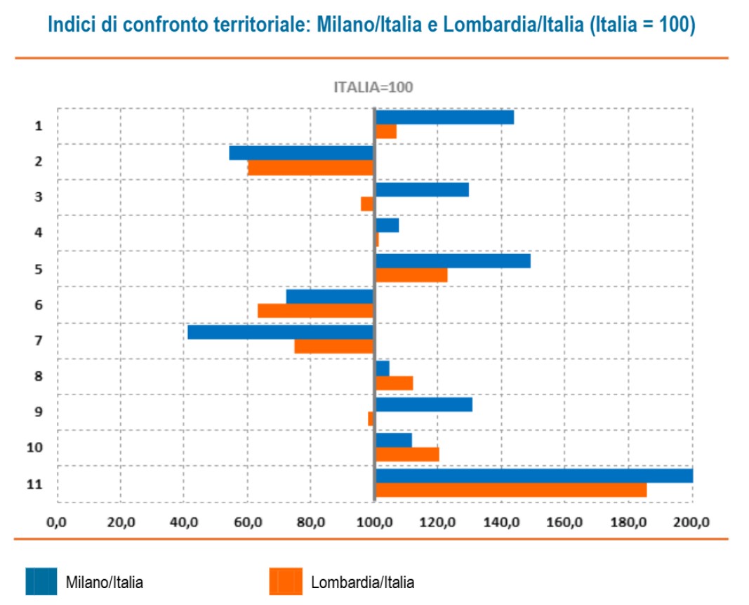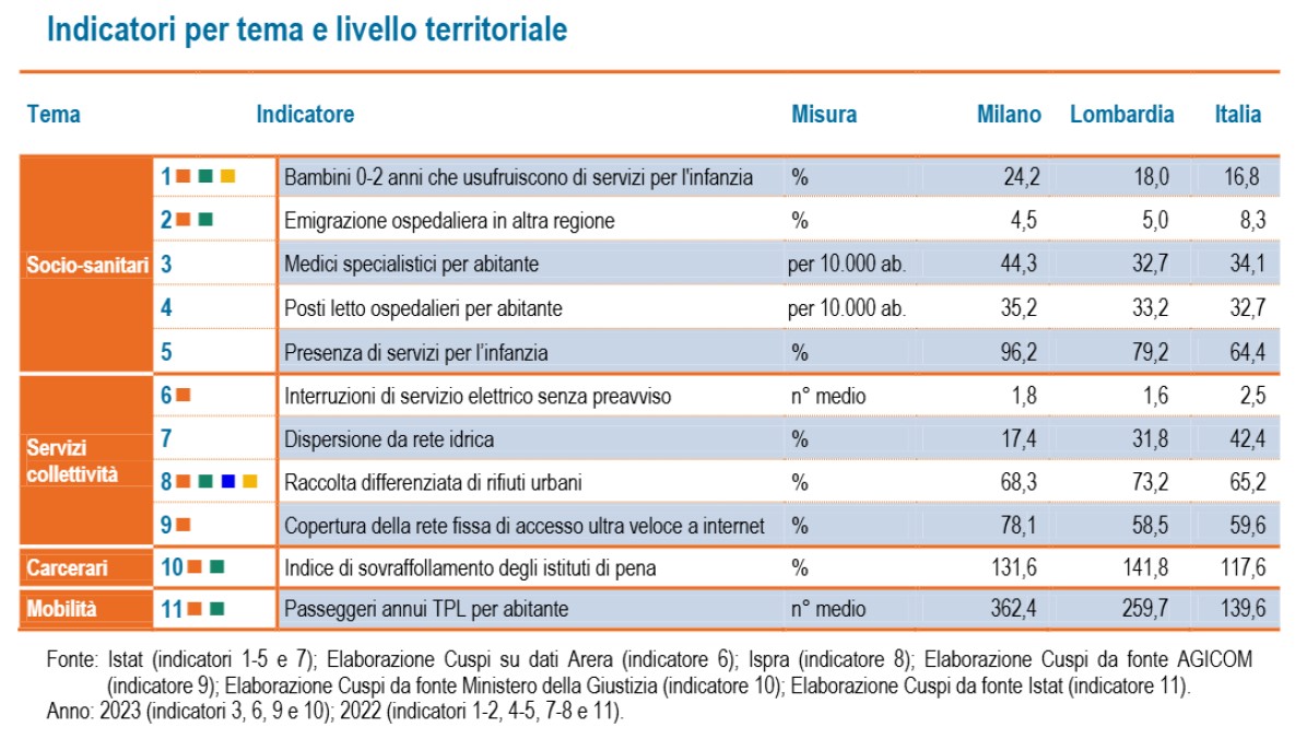 I cinque indicatori socio-sanitari evidenziano situazioni positive: i bambini da 0-2 anni che usufruiscono dei servizi per l’infanzia sono il 24,2%, il 44% in più rispetto al resto del Paese. In merito all’emigrazione ospedaliera in altra regione, i milanesi che beneficiano di cure ospedaliere fuori regione sono il 4,5%, contro l’8,3% a livello nazionale. Con riguardo ai medici specialisti in attività nel sistema sanitario pubblico e privato per 10.000 abitanti, il risultato del milanese si attesta al 44,3% quasi il 30% in più al confronto con il Paese. Più omogenea appare la situazione per quanto attiene ai posti letto ospedalieri per paziente per 10.000 abitanti (dato 2022): il risultato del milanese è del 35,2 invece che il 32,7 nazionale (+7,6%). I Comuni che offrono servizi per l’infanzia raggiungono il 96,2%, sono il 79,2% in regione e il 64,4 nell’ambito nazionale (differenza del 49,4%). […]