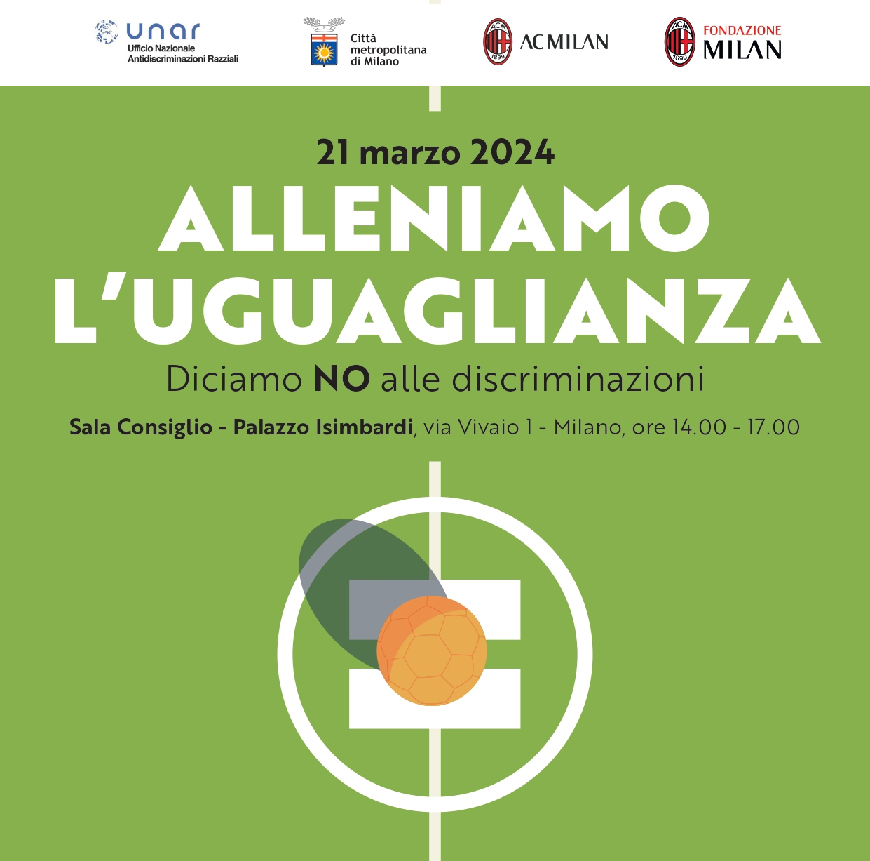 Giovedì 21 marzo, in occasione della Giornata internazionale per l'eliminazione della discriminazione razziale, Città metropolitana di Milano, in collaborazione con la Presidenza del Consiglio dei Ministri - Dipartimento per le pari opportunità e con il supporto di A.C. Milan e Fondazione Milan, promuove una giornata di incontro sui temi dell'educazione e della gender equality per una società inclusiva e rispettosa delle differenze.